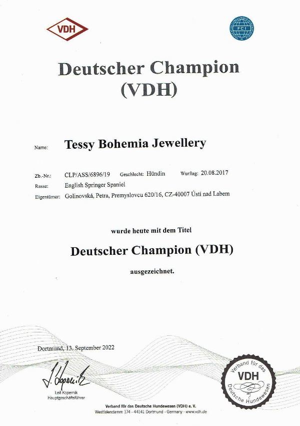 Výborná 1, CAC, CACIB, BOS - MV Nitra (SK) Výborná 1, CAC, CACIB, CAC ČMKU, BOS - MV Brno Výborná 1, CAC, res.CACIB - MV Brno Výborný 1, Anw.Dt.Ch.VDH, res.CAC, res.CACIB - MV Chemnitz