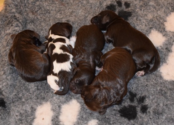| Dne 16.1.2023 se nám narodilo 5 štěňátek - 1 pejsek a 4 fenečky ze spojení: | |||||||||||||||
