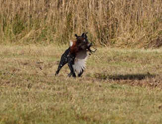 hon na kachny Holany 24.9.2025 Druhý hon jeli ASS černoši Timy s Tessy, NK Hanny a NKO Bradley s Brisou. Počasí nám tentokráte přálo po celou dobu bez deště, ale silný vítr, což se podepsalo na výřadu. Výřad 36 ks. |