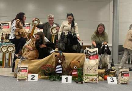 Arny BJ - Výborný 1, CAC, CACIB, BOB a BIG I předvedení Peppi z Ranského letiště (sestřenky) - Výborná 1, CAC, CACIB, BOS |