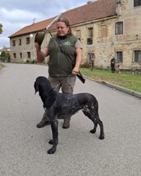 LZ - Teplice 13.7.2025 V neděli 13.7. jsem se zúčastnila lesních zkoušek s NK Hanah BJ a Chrisem BJ. Počasí přálo, začínalo se barvami a prací před. Následovalo odložení, vlečky, pohozená. Pak se hafani proběhli na nahánění a slídění, kde jsme měli štěstí na zvěř! Pro slídiče bylo zakončení zkoušek disciplínou klid na stanovišti. Oba došli v I.cenách. Chris díky věku jako Vítěz, Hanah na 2.místě. |