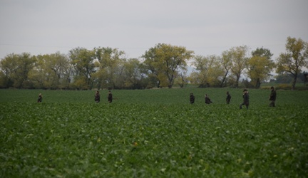 kachny. Závěrem nás čekalo velké pole. Společný hon za námi a