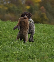 PZ - Teplice 20.6.2025 V pátek 20.6. jsem se zúčastnila podzimních zkoušek se dvěma NK Hanah BJ a Chrisem BJ. Markéta vedla Christine BJ. Počasí přálo až až, po slídění jsme kvůli horku šli na kachnu z hl.vody. Následně pohozené a zakončení vlečkami. Oba došli v I.cenách. Hanah jako Vítěz, Chris na 2.místě. |