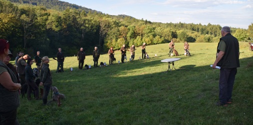 Otmického polesí. Sešlo se 17 ohařů. My si vylosovali číslo 14